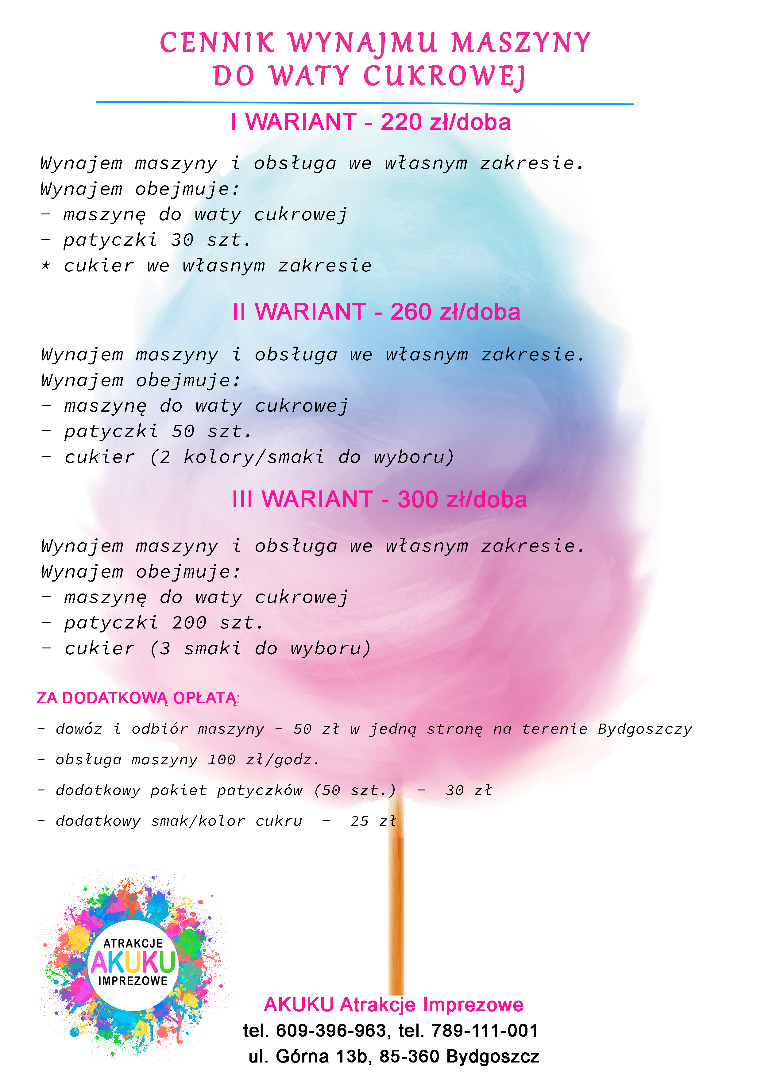 Usługa wyceniana indywidualnie zależnie od czasu trwania, miejsca oraz rodzaju i daty imprezy